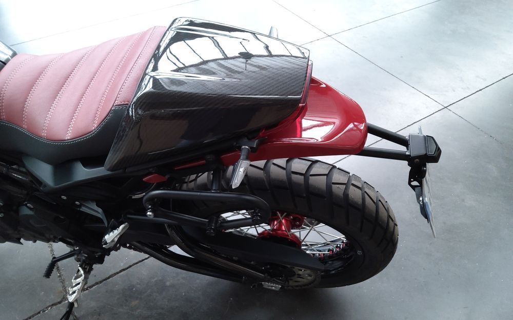 JANTES KINEO SUR MESURE ( FABRICATION ITALIENNE - 3000 EUROS ), ECHAPPEMENT ZARD, SUPPORT DE PLAQUE, SABOT, CAPOT DE SELLE, FEUX ADDITIONNELS, SELLE PERSO,